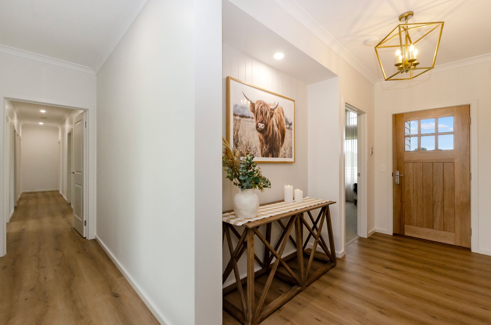 A hallway filled with natural lights runs along the alfresco connecting the two wings of this home. This large north-facing alfresco, has protection from the Portland westerly winds, making it the perfect setting for entertaining and relaxed family living all year round.